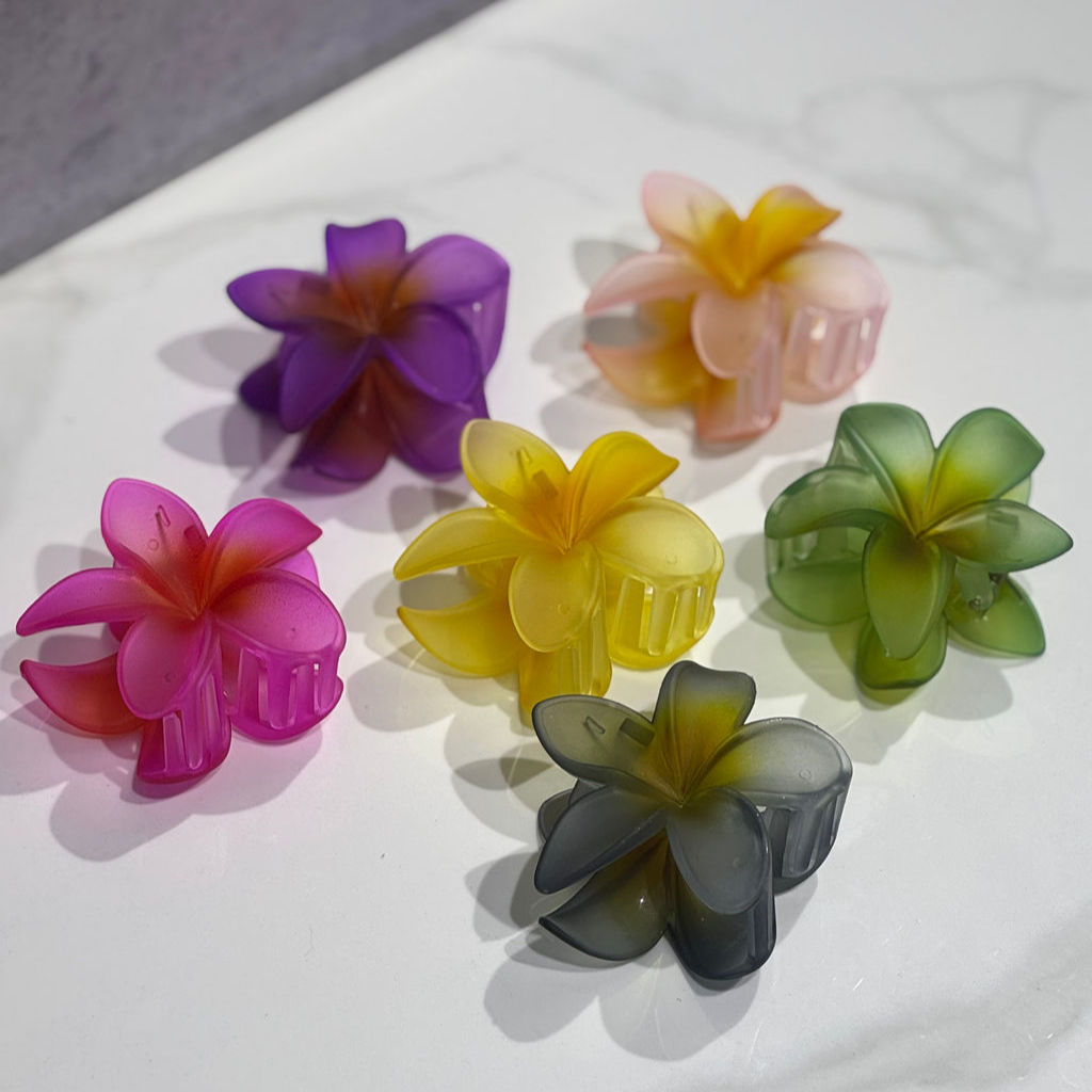 La flor hawaiana en colores mate es perfecta para darle un toque elegante y divertido a tu peinado o accesorio.