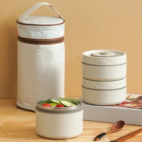 Nuestro portacomidas térmico de tres compartimientos mantiene tus alimentos a la temperatura ideal durante horas. Perfecto para la oficina, el colegio, el gimnasio o viajes.